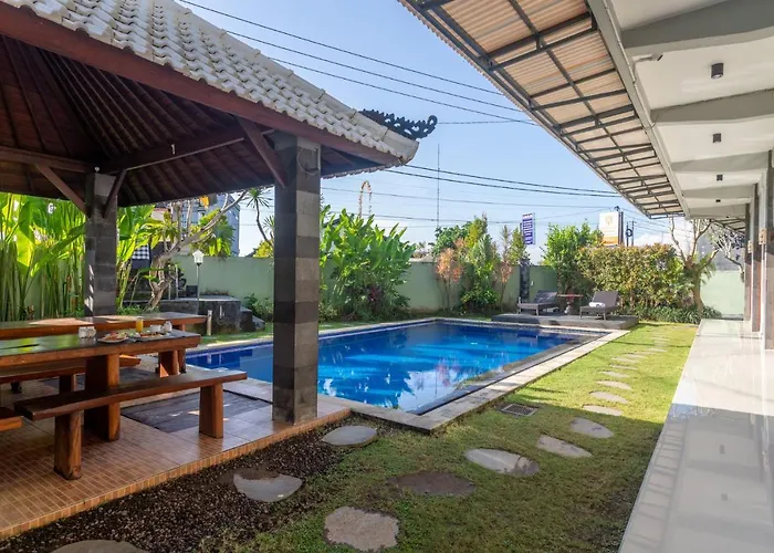 El Cempaka Mas Guest House Canggu se encuentra a 7 km de la Calle Petitenget y ofrece una terraza con una piscina y una mesa de comedor. Con una piscina, este hotel de 3 estrellas está a 10 minutos en coche de lugares de interés natural como la Playa de Batu Bolong.